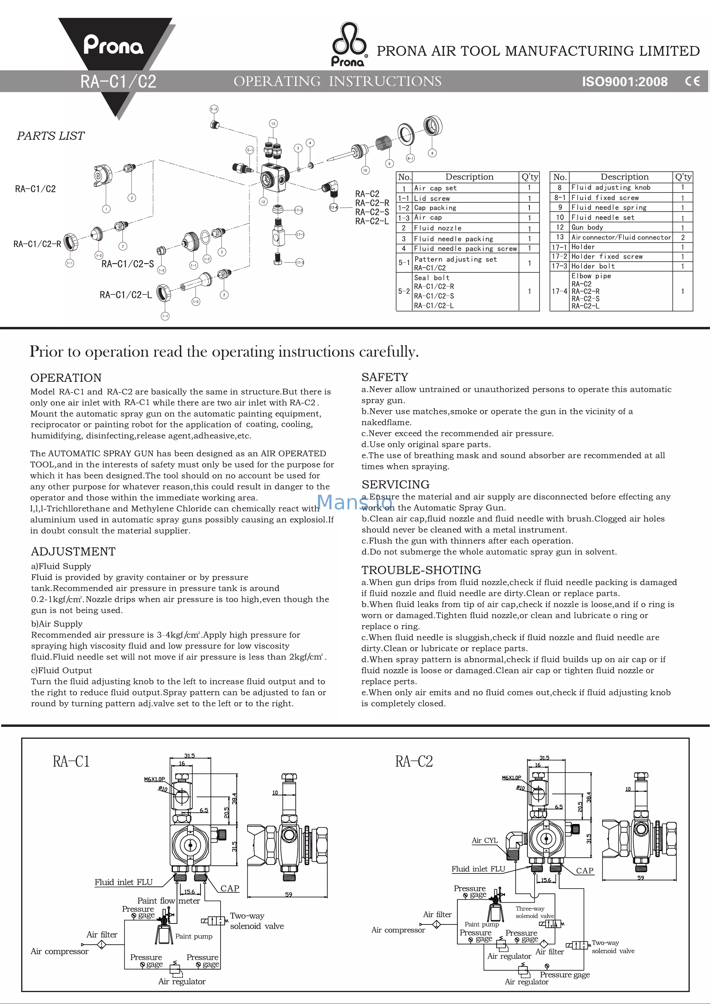 PISTOLA AEROGRAFICA AUTOMATICA PRONA RA-C2L PASO 1.3 ABANICO REDONDO